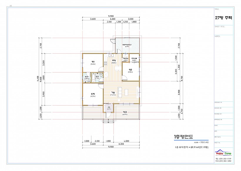 관리자 작성일경기도 화성시 정남에 시공된 27평의 조립식주택 평면도및 입체도