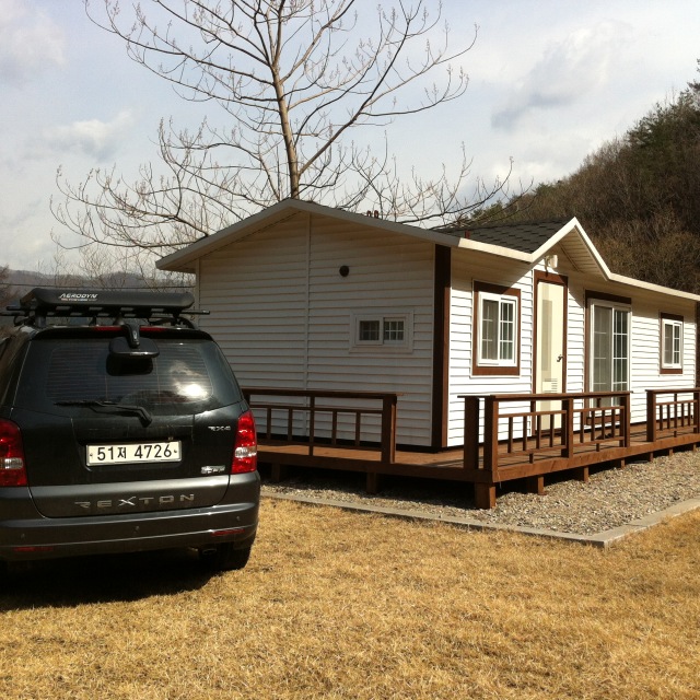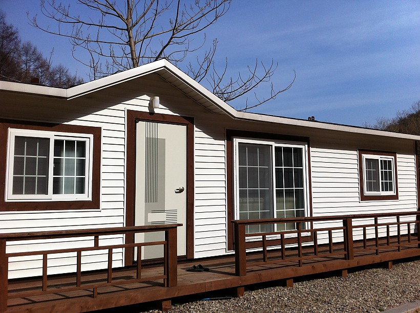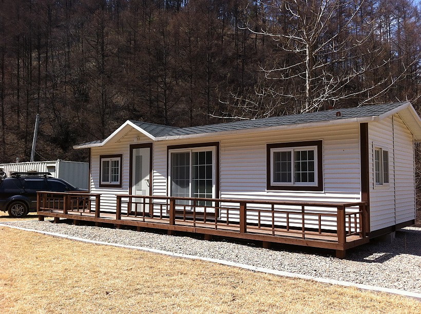 강원도 영월 며느리고개에 설치된 주말주택12평시공현장