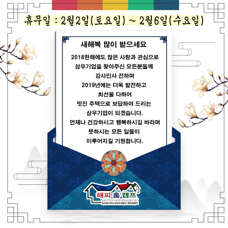 설 연휴 휴무안내입니다. 페이지 정보 작성자 관리자 작성일19-02-01 15:02 조회3,378회 댓글0건 이전글 다음글 목록 본문 . 댓글목록 회원가입 후 로그인 하시면 댓글을 보시거나 입력하실 수 있습니다. 이전글 다음글 목록