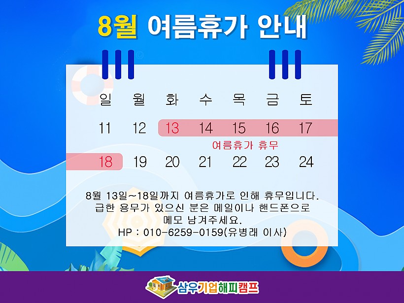 8월 여름 휴가 안내