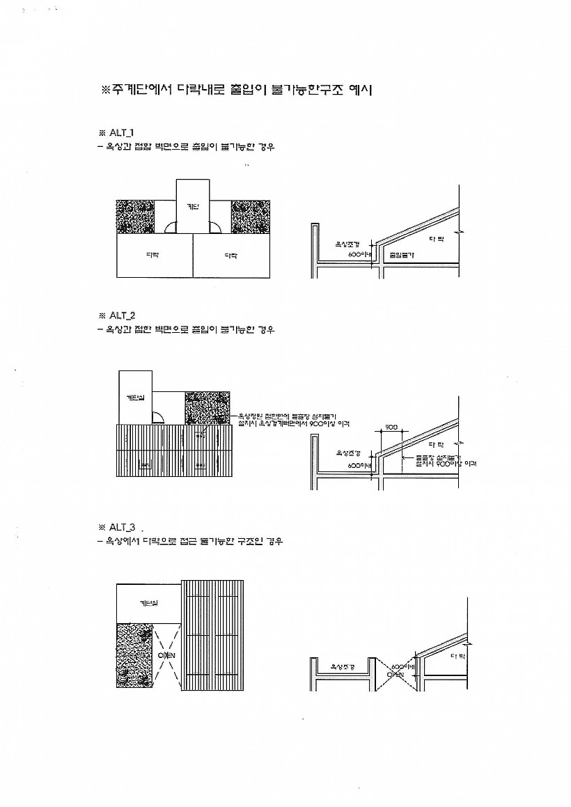 라. 다락층까지 연속된 주계단은 설치 불가(주계단에서 다락내로 출입이 불가능한 구조인 경우 제외 - 별첨 예시 참조)